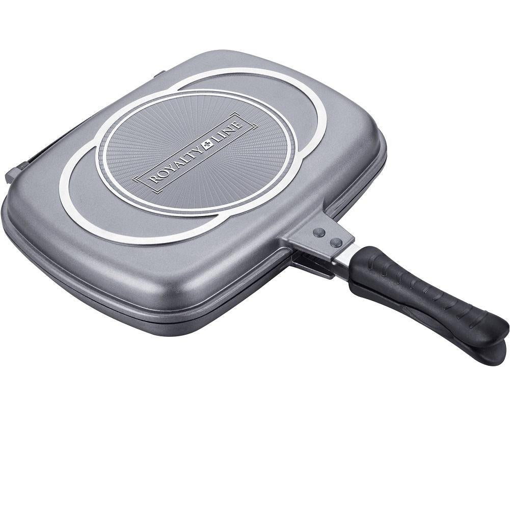 Royalty Line 32cm Marble Coating Double Fry And Grill Pan - Silver